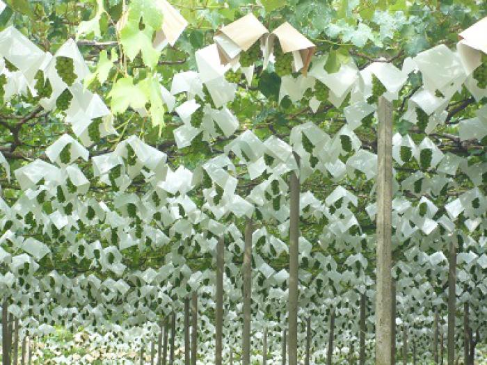 ブドウ畑では、農家の方がいろいろ作業しています。