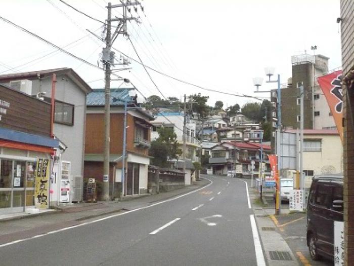 駅前から真鶴港までは、下り坂が延々と続いています。