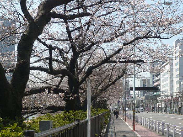 市ヶ谷駅を下車して、駅を背にして靖国通りを九段下に向かって歩く道沿いの桜は、満開でした。市ヶ谷駅を背にして左側の通りが満開で、右側の通りが7分咲きと言う感じでした。